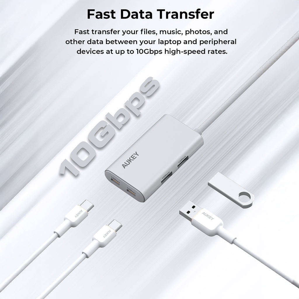 10Gbps Data Transfer: Equipped with 2 USB-C and 2 USB-A ports, delivering ultra-fast data transfer speeds of up to 10Gbps for multiple devices simultaneously. Ideal for quickly transferring large photos, videos, and files with maximum efficiency.
